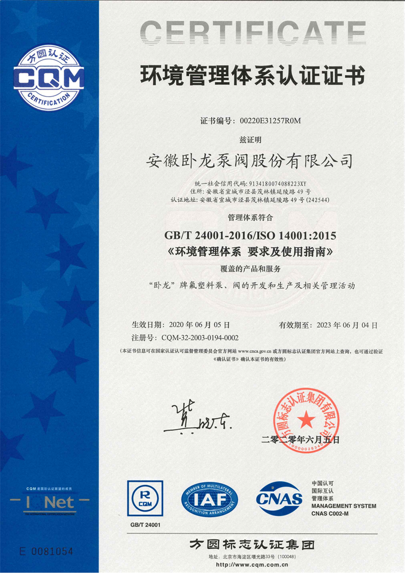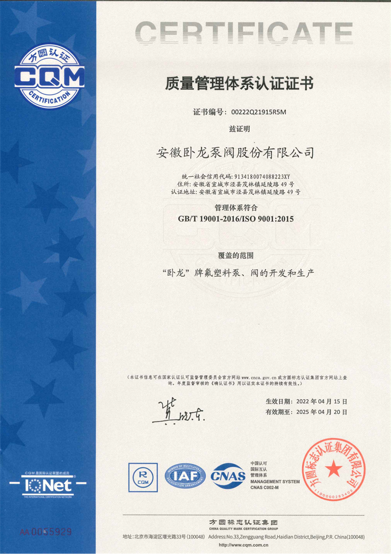 安徽臥龍泵閥股份有限公司位于風(fēng)景秀麗的江南古鎮(zhèn)——安徽省涇縣茂林鎮(zhèn)。公司前身涇縣氟塑料制品廠(chǎng)創(chuàng)建于1985年,是國(guó)內(nèi)較早引進(jìn)中科院上海有機(jī)化學(xué)研究所專(zhuān)利材料——"氟塑料合金",并以此耐腐蝕材料專(zhuān)業(yè)生產(chǎn)制造化工泵、閥、襯氟管道等產(chǎn)品的企業(yè)。公司經(jīng)過(guò)歷次的改制變革,2015年更名為安徽臥龍泵閥股份有限公司。